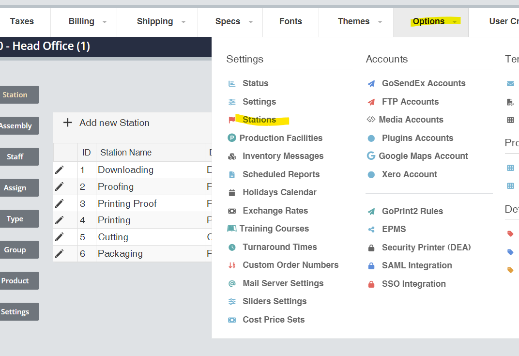To set up your stations Go to Manage Producer -> Options -> Stations. (Will only be viewed if enabled.)