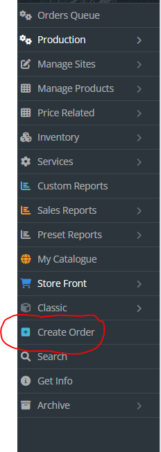 1. From the back end click Create Order on the menu