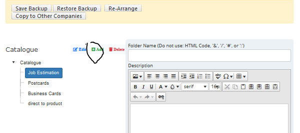2.Click the Add icon then enter the name and description of the first sub-folder then click the Add button. Add as many folders as required.