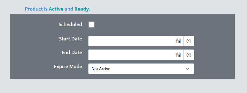 Fill in the Start Date and the End Date to have the product set to active on the specified start date.